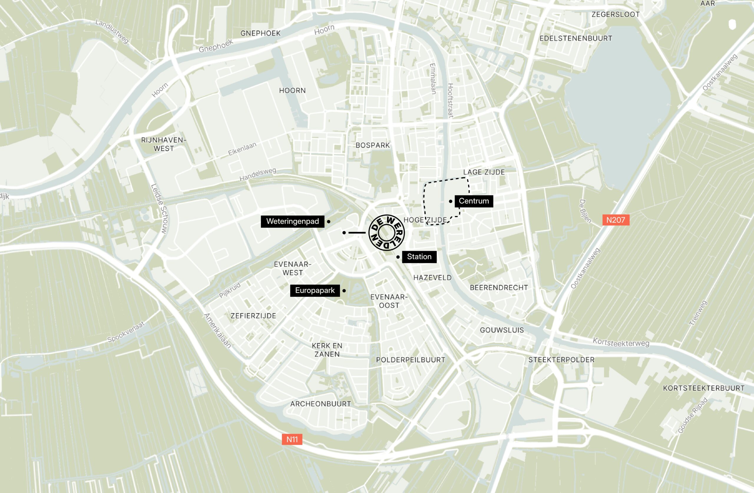 Stad, natuur en verbinding; alles komt samen in De Werelden. De wijk ligt aan de rand van het centrum van Alphen aan den Rijn, op loopafstand van winkels, horeca en het station. Je woont hier in balans: de stedelijke energie ligt om de hoek, terwijl je tegelijk geniet van rust en ruimte om je heen.